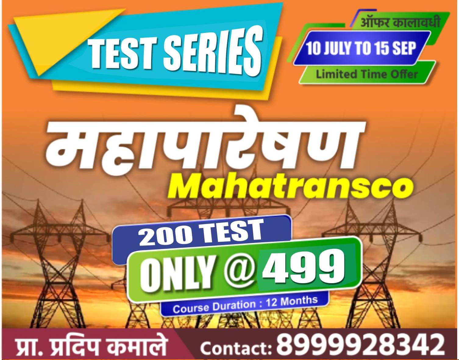 प्रत्येक Test ही महापारेषण -महावितरण - यांच्या अभ्यासक्रमाच्या धरतीवर आधारित असेल 🔍 200 Test या विषयानुसार असतील 🔍 सर्व Test पुन्हा-पुन्हा कितीही वेळा सोडवता येतील . 🔍 शंका निरसन साठी शिक्षकांशी प्रत्यक्ष संवाद साधू शकता. 🔍सर्व परीक्षाभिमुख मुद्दे व संकल्पना घेतल्या जातील व शिवाय सरावासाठी प्रश्न ही दिले जातील ₹ FEES ONLY RS.499/-
